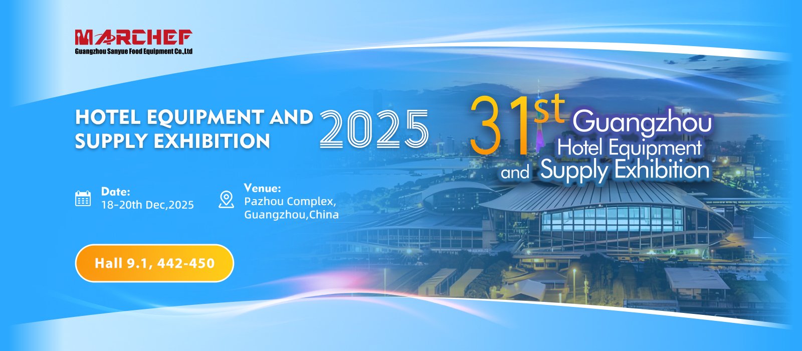 We are pleased to invite you to visit Marchef at the 31st Guangzhou Hotel Supplies Exhibition, which will be held from December 18-20, 2025 at the China lmport and Export Fair Complex (Canton Fair Complex)