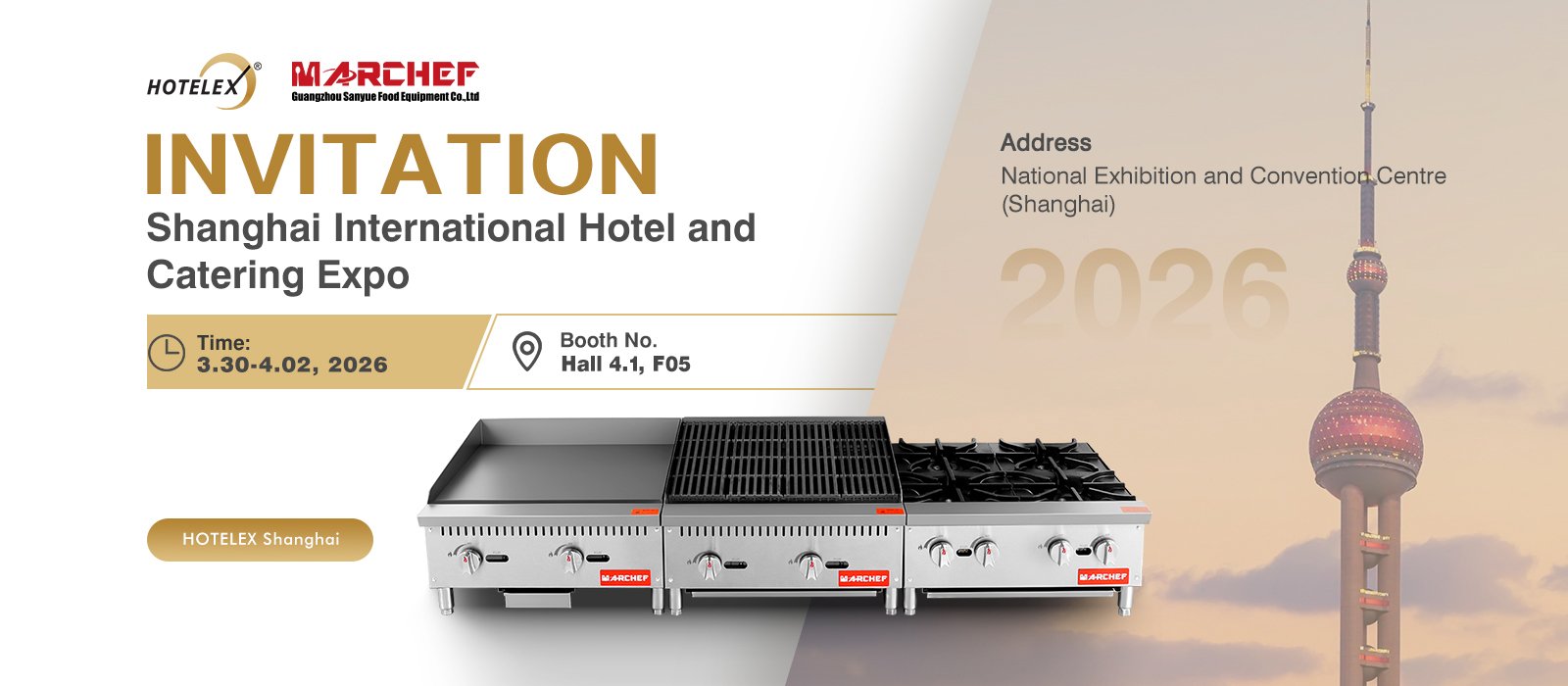 We’re excited to invite you to visit Marchef at the 31st Shanghai International Hotel & Catering Expo, taking place March 31–April 3, 2026 at the Shanghai New International Expo Centre.